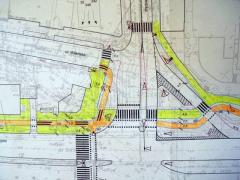 Projektant zaczął rysować wariant optymalny, dodał też zaproponowany na forum przejazd przez Al. Solidarności, ale przy okazji kolejnej Rady Technicznej przypadkiem wyszło na jaw, że był już wcześniej opracowany projekt przebudowy tego skrzyżowania, porządkujący parę innych kwestii.