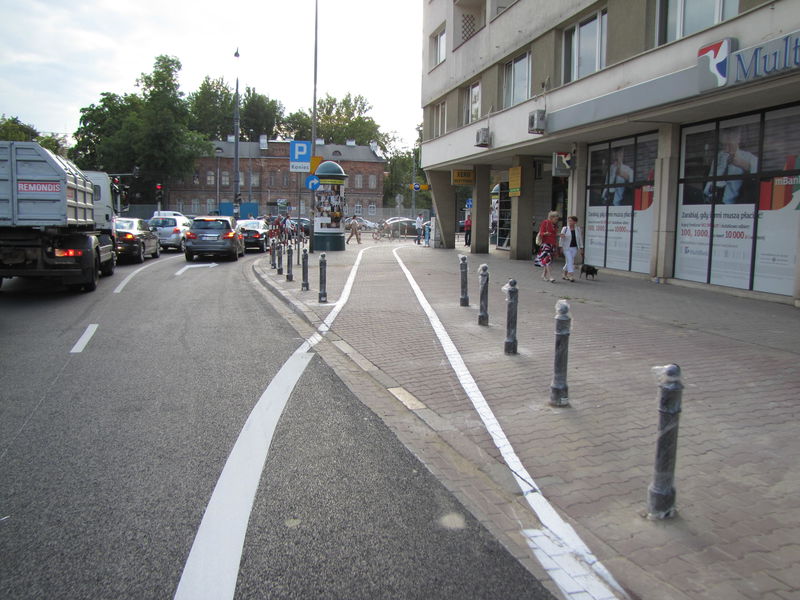 Na razie jednak pas włączono we fragment ścieżki przy Puławskiej, jednej z najstarszych i najgorszych w Warszawie [zobacz >>>]. Można nią jednak dojechać do ul. Batorego i Pola Mokotowskiego (a raczej można by było, gdyby nie budowa centrum handlowego Plac Unii bez wytyczenia objazdu dla rowerzystów).