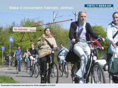 Jako komentarz do tej ostatniej obserwacji, pozwolimy sobie wkleić jeden slajd z prezentacji Hansa Voerknechta z Fietsberaad, czyli holenderskiego centrum wiedzy o ruchu rowerowym. W krajach o bardziej dojrzałej demokracji [zobacz >>>] rządy zatrudniają kompetentnych specjalistów od bezpieczeństwa ruchu drogowego, którzy wiedzą, że poprawa bezpieczeństwa niechronionych uczestników ruchu nie polega na ich straszeniu i przebieraniu za kosmitów.