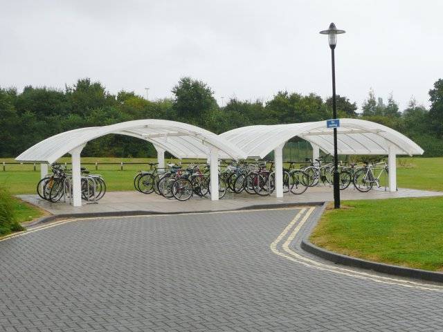 Stojaki na rowery są umieszczone pod porządnym zadaszeniem. Każdy z nich umożliwia łatwe przypięcie dwóch rowerów, niezależnie czy rower posiada nóżkę, czy nie. Nie powodują uszkodzeń roweru, tak jak to się dzieje przy popularnych w Polsce wyrwikółkach.