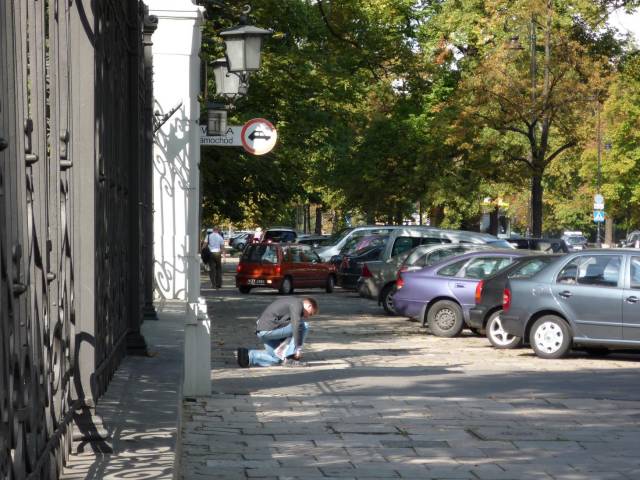 Żaden z kilkudziesięciu samochodów zastawiających chodnik nie doczekał się reakcji ze strony strażników przez ponad dwa tygodnie powtarzanych zgłoszeń.
