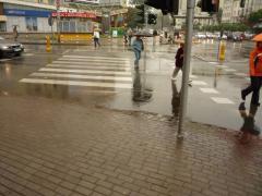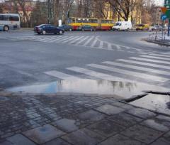 - dziura na przejściu dla pieszych, w której gromadzi się woda;