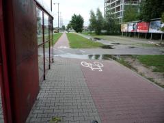 - woda z nieszczelnej rury odpływowej z Trasy Siekierkowskiej zalegająca na przejściu, przejeździe i okolicznych trawnikach;