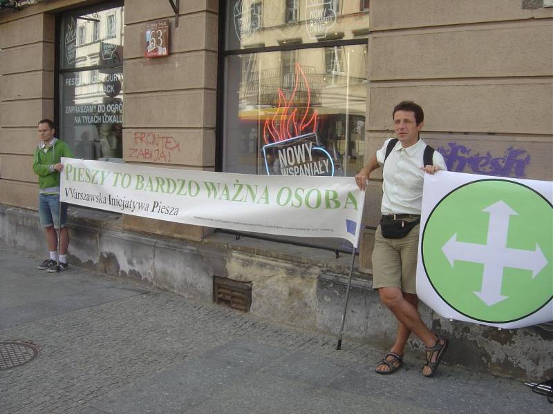 "Pieszy to bardzo ważna osoba" - głosił napis na transparencie streszczający ideę zarówno tej akcji, jak i VVarszawskiej Inicjatywy Pieszej VIP, co można też rozwinąć jako Very Important Pedestrian.