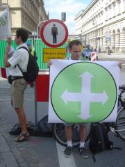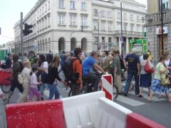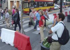 30 sierpnia o 15:00 odbył się zapowiedziany wcześniej [zobacz >>>] happening na rzecz poprawy organizacji ruchu pieszego na skrzyżowaniu Nowego Światu i Świętokrzyskiej pod hasłem Półtora metra od płotu metra - wyprostujmy Trakt Królewski dla pieszych! Oto kilka migawek z tego wydarzenia oraz zaktualizowane postulaty.