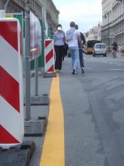Pierwotnie zgłoszony postulat, żeby odsunąć metr do tyłu płot lub pozyskać potrzebną przestrzeń poprzez zwężenie jezdni, okazał się nieaktualny. Płot przesunięto, ale w drugą stronę, zwężając w ten sposób jezdnię ul. Nowy Świat. Zmieniono także program sygnalizacji i dla osób przechodzących przez ul. Świętokrzyską światło zielone skrócono dwukrotnie. Piesi mieli źle, a mają jeszcze gorzej!