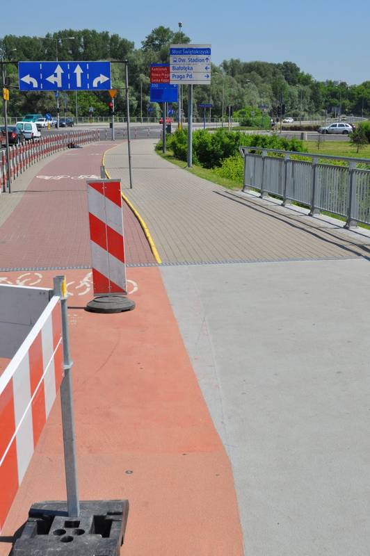 W dodatku zawalidrogę ustawiono tak, by rowerzysta próbując wrócić na drogę rowerową z chodnika nadział się na niebezpieczny krawężnik pomiędzy nim, a drogą rowerową (niedawno pomalowany na ostrzegawczy żółty kolor w związku z wypadkami rowerzystów). Czyżby ZDM zatęsknił za płaceniem odszkodowań?