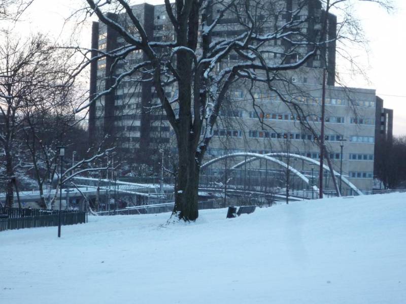 Czasem oczywiście obie funkcje są łączone - na zdjęciu kładka nad torami prowadząca od razu na park na wzgórzu.