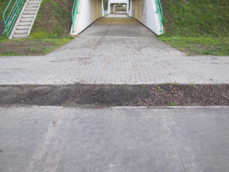 Nie udało się: wykonać przejścia pod Trasą na zachód od ul. Modlińskiej jako pieszo-rowerowego. Szkoda, bo objazd tym przejściem mógłby być szybszy niż czekanie na kiepsko zaprogramowanych światłach. Wyjeżdżone ślady wskazują że z przejścia korzystają nawet kierowcy samochodów.