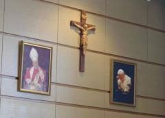 Jedna ze studentek sprostowała to, twierdząc, że Uniwersytet Kardynała Stefana Wyszyńskiego nie jest uczelnią katolicką, co we wnętrzu ozdobionym takimi dekoracjami zabrzmiało trochę zaskakująco.