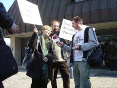 Wśród mówców nie mogło też zabraknąć "Szczypy Cezarego", przewodniczącego samorządu studentów, który tak właśnie się przedstawia. Zabłysnął dwoma stwierdzeniami. Pierwsze znamy już z jego pisma do Biura Ochrony Środowiska [zobacz >>>]. Zauważył, że w Zarządzeniu Ministra uznającym Las Bielański za rezerwat [zobacz >>>] wymienia się potrzebę zachowania wartości społecznych i krajobrazowych, i błyskotliwie ujawnił, że nie ma tam ani słowa o ochronie zwierząt! W domyśle: można te zwierzęta płoszyć, truć, łowić w sidła, szczuć psami itp. A „drobiazgami” w rodzaju ustawy o ochronie przyrody i innych aktów prawnych dotyczących wprost i bezwarunkowo chronionych obszarów i gatunków p. Szczypa (ponoć student prawa kanonicznego) woli nie zaprzątać głowy słuchaczom, a może i sobie też.