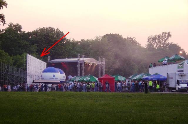 Wbrew zapewnieniom p. Szczypy, a wcześniej rzeczniczki UKSW, podczas koncertu nie było żadnych wyciszeń . Chyba że tym mianem określimy reklamę wskazaną strzałką na zdjęciu.