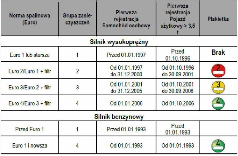 Tabela przedstawia jaki rodzaj etykietki otrzymuje konkretny pojazd.