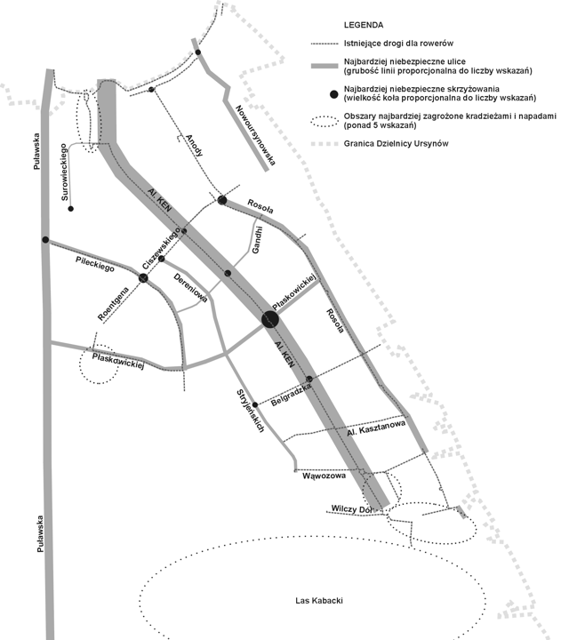 Najbardziej niebezpieczne dla rowerzystów ulice, skrzyżowania i rejony zagrożone napadami.