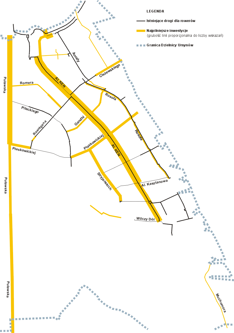 Najpilniejsze według uczestników ankiety inwestycje rowerowe.