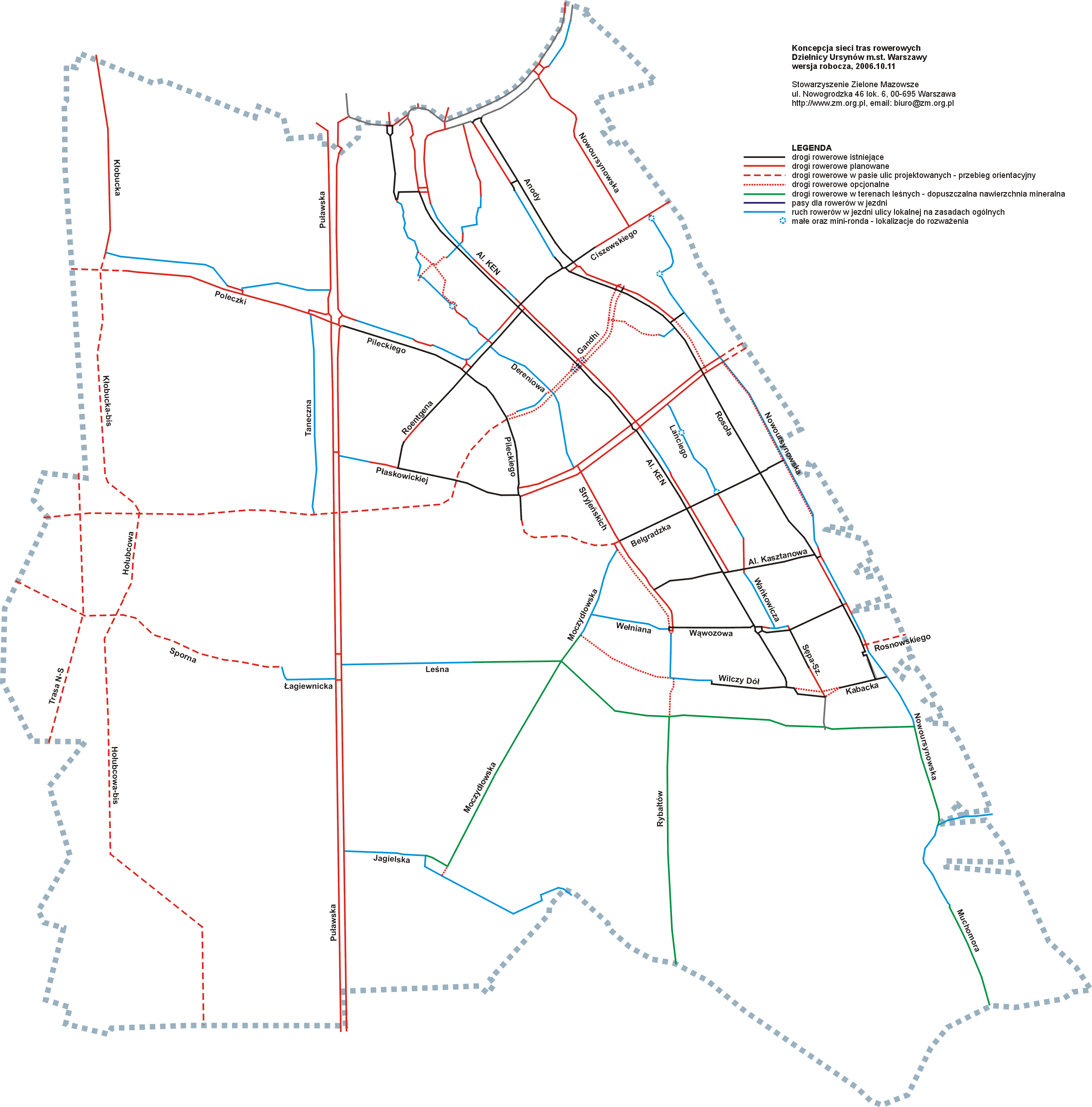 Koncepcja sieci tras rowerowych dla Ursynowa - wersja robocza.