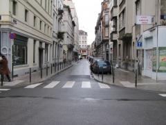 Bruksela, ucho jednostronne, bo ze względu na wąskość ulicy tylko po jednej stronie zmieściły się miejsca parkingowe. Oczywiście, na ruch rowerów pod prąd (patrz znak po prawej) miejsce jest zawsze [zobacz >>>].