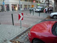 Nikozja jest miastem jeszcze bardzo zmotoryzowanym i jeszcze bardziej antypieszym niż Warszawa, ale i tutaj można znaleźć przykłady zmian na lepsze. Na zdjęciu widać stary i nowy przebieg krawężnika.