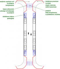 Propozycja Transprojektu Gdańskiego dla ulic lokalnych zmierza do poprawy widoczności na skrzyżowaniach (słusznie) przez odsunięcie od nich miejsc parkingowych (na ulicach lokalnych – nie zawsze słusznie). To rysunek nr 9 z opracowania – typowa ulica dwukierunkowa.