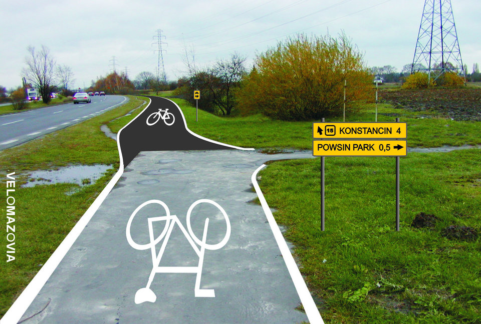 Trasa Warszawska przy ul. Drewny - brakuje 1900 m ścieżki, by połączyć Szlak Wisły z Konstancinem.