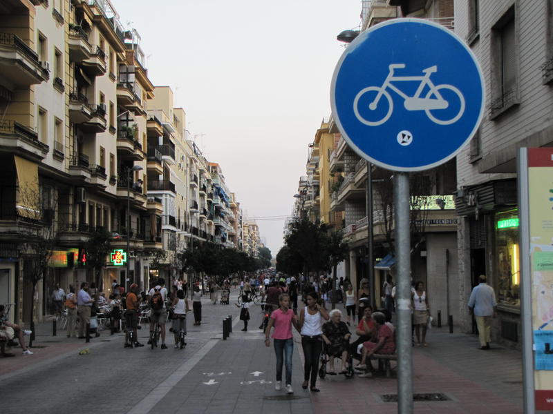 ...oraz o licznych strefach uwolnionych od samochodów, a dostępnych dla rowerów. Trudno uwierzyć, że jeszcze parę lat temu były tu trzy pasy ruchu, a piesi przeciskali sie miedzy ścianą budynku i parkującymi samochodami.