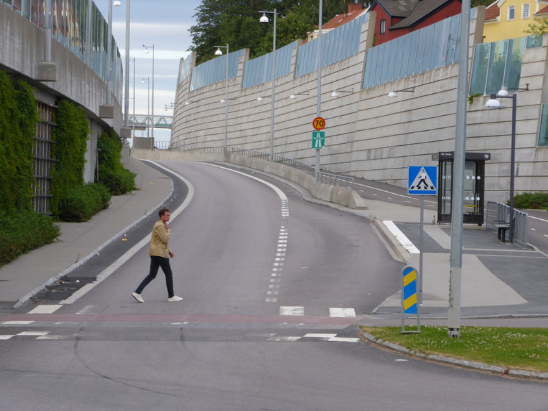 Wyniesione przejście i przejazd na węźle autostradowym typu WB w Göteborgu (Szwecja).