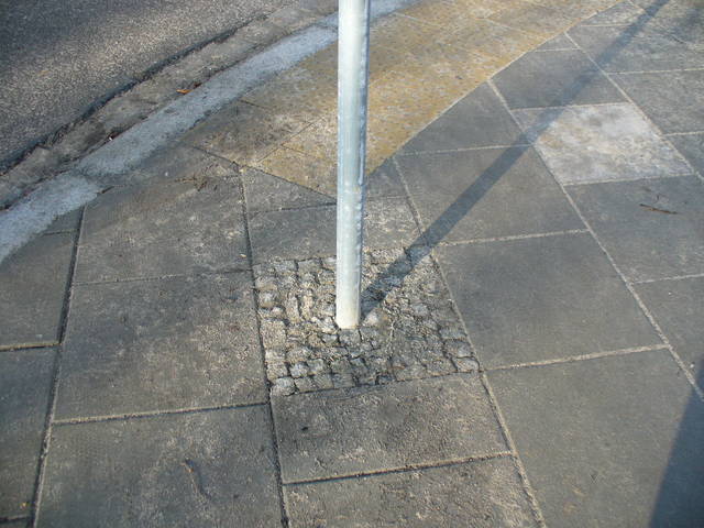 Wykonanie obniżenia, linii dla niewidomych i osadzenie znaku (typowe dla wszystkich remontowanych miejsc)
