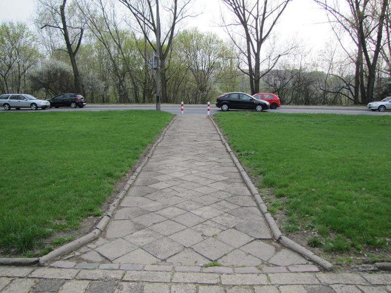 Zamiast likwidować przejścia, należy wytyczyć nowe - np. tutaj, w osi Parku Praskiego, gdzie doprowadzony jest nawet chodnik.