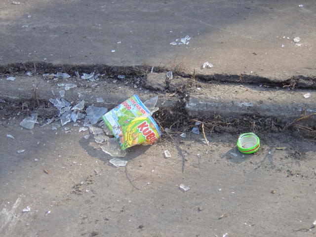 ...jak i detalicznie. Ta butelka na szczęście rozbiła się na asfalcie, a nie na głowie pieszego czy rowerzysty... Dopóki władze miasta nie ustawią tam barier dźwiękowych czy innego ogrodzenia, trzeba być przygotowanym na niemiłe widoki. Także związane z ludzką fizjologią.