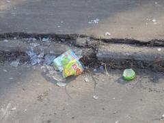 ...jak i detalicznie. Ta butelka na szczęście rozbiła się na asfalcie, a nie na głowie pieszego czy rowerzysty... Dopóki władze miasta nie ustawią tam barier dźwiękowych czy innego ogrodzenia, trzeba być przygotowanym na niemiłe widoki. Także związane z ludzką fizjologią.