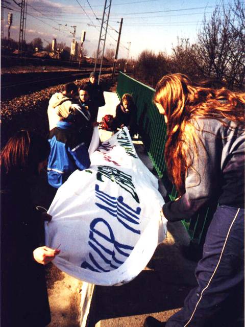 By zwrócić uwagę na notoryczne łamanie prawa przez Zarząd Dróg Miejskich, wywiesiliśmy na jednym z wiaduktów węzła Żaba okolicznościowy transparent.