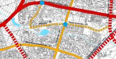 [5] Fragment mapy Układ drogowo-uliczny. klasyfikacja - Kierunki Zagospodarowania, rysunek nr 17 Studium Uwarunkowań i Kierunków Zagospodarowania Przestrzennego Warszawy. Za www.architektura.um.warszawa.pl/rysunki-studium#zalaczniki