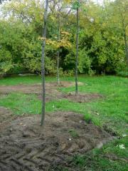 Budowa zatok wymagała przesunięcia chodników, co w jednym przypadku kolidowało z 13 drzewami. 12 z nich (szpaler klonów jaworów) przesadzono, jedną wiśnię i rosnące wokół niej krzewy wycięto.