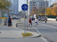W piśmie do projektanta ZTM napisał, że wymiary wiat powinny w możliwie jak największym stopniu wykorzystać dostępną powierzchnię przystanków, zapewniając jednocześnie pieszym bezpieczne i swobodne korzystanie z ciągu pieszego oraz pasażerom dobrą widoczność nadjeżdżających pojazdów2. We wcześniejszym piśmie podał, że szerokość wysepki przystankowej powinna wynosić nie mniej niż 2 metry powierzchni użytkowej3. Czy wykonane przystanki zapewniają pieszym bezpieczne i swobodne korzystanie z ciągu pieszego? Przytoczone zdjęcia dają chyba odpowiedź. W chwili postoju autobusu funkcja ciągu pieszego ulega zaburzeniu i znaczącemu pogorszeniu. Może dochodzić do konfliktów między przechodniami i pasażerami. Czy ZTM nie ma świadomości obowiązków wynikających z ustawy prawo przewozowe?