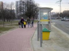 W trzech na pięć przypadków odstęp między krawężnikiem a wiatą wynosi tylko 1,5 metra. Tymczasem według właściwego rozporządzenia1 Szerokość chodnika przy jezdni lub przy pasie postojowym nie powinna być mniejsza niż 2,0 m. Po zachodniej stronie ulicy między Poligonową a Kompasową obok wiaty dwie osoby mijają się z trudem.