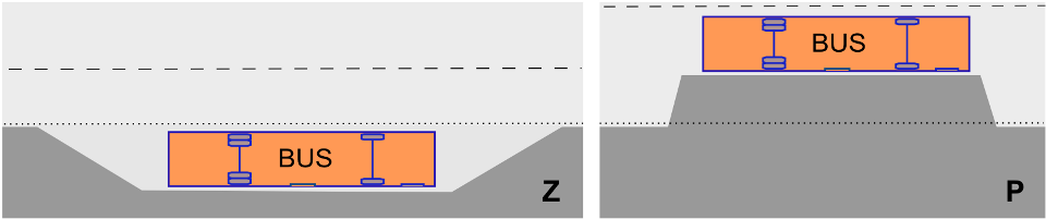 Ideę tego rozwiązania ilustruje graficzne porównanie zatoki (Z) i półwyspu (P). W zatoce mamy do czynienia z peronem wklęsłym, cofniętym względem krawędzi jezdni (kropkowana linia). W przypadku peronu półwyspowego - dokładnie odwrotnie - jego krawędź jest wysunięta ku osi jezdni, niczym lustrzane odbicie zatoki. Stąd określenie „antyzatoka” akcentujące (niezbyt zgrabnie) to przeciwieństwo.