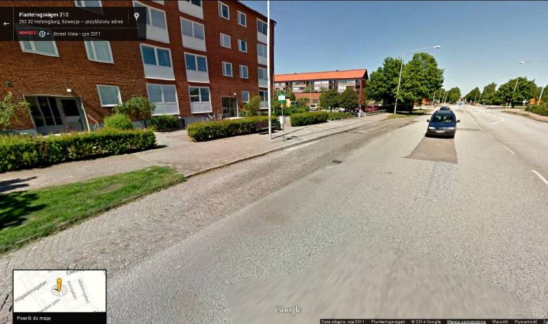 To archiwalne zdjęcie przywołuje kolejną wyleczoną już zatokę autobusową na ul. Planteringsvägen. W niej, za skrzyżowaniem z Högastensgatan znajdował się przystanek w kier. południowym. (Zdjęcie zapożyczone z Google Street View.)