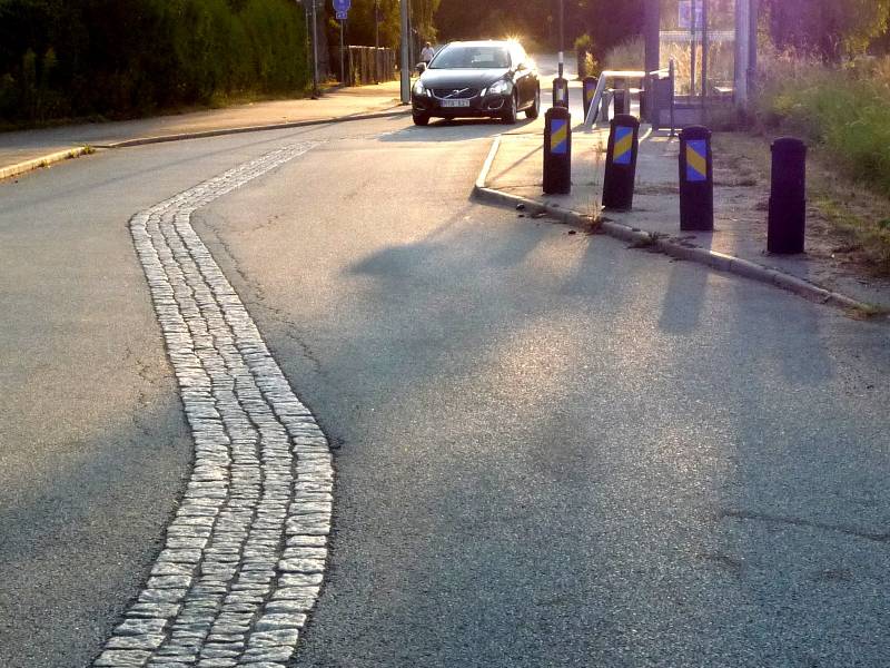 Rolę dyscyplinująco-napominającą pełni też półmetrowy pas bruku wtopiony w meandrującą oś jezdni.