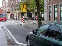 Kolejny przykład pochodzi z Birkerød – miasteczka leżącego 25 km na północ od Kopenhagi. Na filmie poniżej, w drugiej części (niestety nie najlepszej jakości) można zobaczyć dwa symetryczne perony uniemożliwiające nie tylko wyprzedzanie autobusu podczas postoju, ale także mijanie się samochodów osobowych. Układ ten pełni więc funkcję przewężenia uspokajającego ruch, znanego z Oerlinghausen [zobacz >>>].