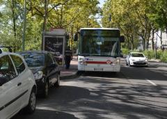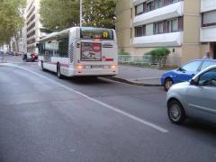 Nieopodal napotykamy kolejną parę przystanków półwyspowych. Przy przystanku Sacré-Cœur na Avenue Georges Pompidou ciągła linia nie pozwala na wyprzedzanie autobusu podczas postoju.