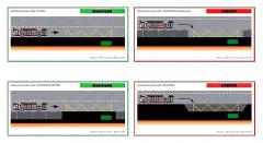 Oto grafika ze strony 11. Oba oceniane negatywnie warianty widać po prawej (odpowiednio: na dole i na górze). Po lewej zaś i z zielonym akcentem znajdują się dwa rekomendowane rodzaje peronów: en ligne – ,,krawężnikowy'' (u góry) i en avancée – półwyspowy (u dołu).