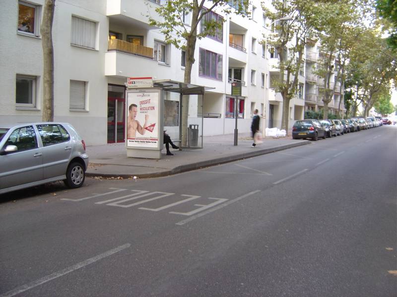 Tu widzimy peron przystanku Ferrandière dla przeciwnego kierunku (na zachód). Napis ecole (szkoła) na jezdni to dobra okazja, by przypomnieć, że brak zatoki spełnia rolę fizycznego uspokojenia ruchu i środka dyscyplinującego kierowców. Ostrzeżenie przed dziećmi powinno zawsze iść w parze z bardziej skutecznymi sposobami egzekwowania bezpiecznego zachowania na drodze.