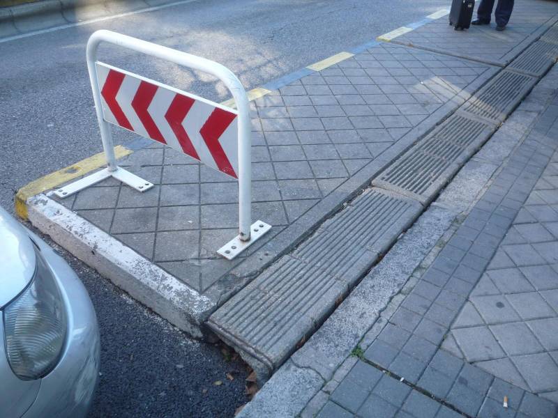 Zbliżenie konstrukcji. Prefabrykowaną płytę betonową tworzącą peron znamy z Barcelony i Aten [zobacz >>>]. Tu jednak między krawężnikiem a peronem zamiast metalowego przykrycia znajdują się wyprofilowane segmenty betonowe z prześwitem odwadniającym. Wszystko całkiem porządnie spasowane, bez przerw i uskoków.