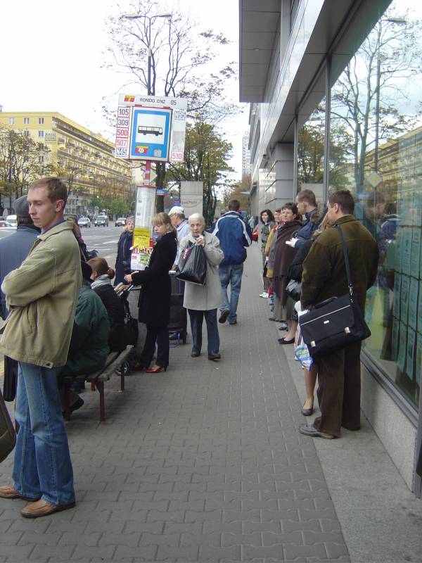 Świetnie to widać na (już i oby na zawsze archiwalnym) przykładzie z ul. Świętokrzyskiej [zobacz >>>], a nie jest to przypadek odosobniony lecz reprezentatywny przykład dominującego trendu. Obciąć premię należałoby temu, kto zatwierdził takie a nie inne proporcje podziału pasa drogowego tworząc zatokę kosztem chodnika. Osoba ta najwyraźniej nie wie, że przestrzeń euklidesowa, która nas ogranicza, nie daje możliwości wtłoczenia na trzymetrowy chodnik koszy, ławki, wiaty itd. bo takie są prawa fizyki.