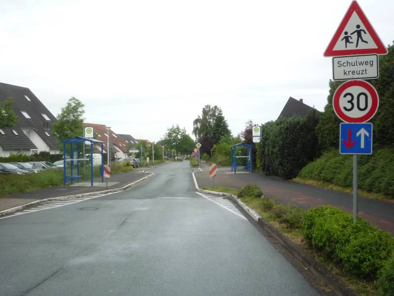 Dzięki dwóm symetrycznym peronom (leżącym dokładnie naprzeciw siebie w odległości 3,5 metra) postój autobusu całkowicie wstrzymuje ruch na Dalbker Straße - głównej ulicy tej osady. Bezpieczeństwo pieszych, zwłaszcza uczniów pobliskiej szkoły, uznano za ważniejsze od płynności ruchu.