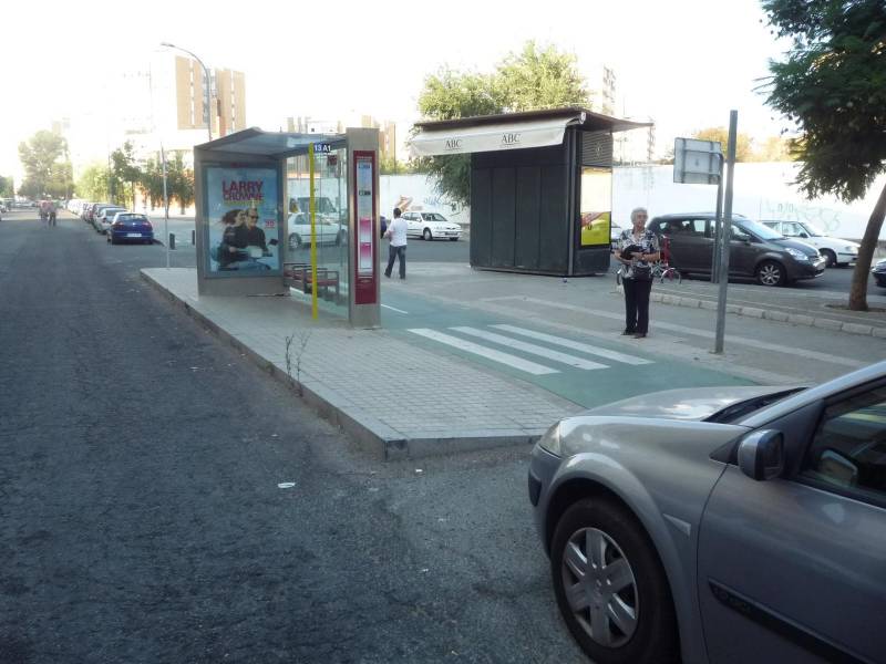 Spojrzenie na ten sam przystanek od strony jezdni. Za jego mankament można uznać ścianę wiaty zajmującą prawie całą szerokość peronu.