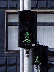 Wspólne sygnalizatory pieszo-rowerowe popularne są np. w Wiedniu, gdyż oszczędni Austriacy liczą się z pieniędzmi. W bogatej i rozrzutnej Polsce wspólne sygnalizatory są wciąż rzadkością, ale można je już zaobserwować np. na ulicach Ełku. Warto spopularyzować to proste i oszczędne rozwiązanie - zamiast topić kilkaset tysięcy złotych w nowe świecidełka, lepiej wybudować dłuższą ścieżkę lub dokonać niezbędnych korekt geometrii skrzyżowań.