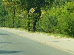 Na początku interwencja ta nie przyniosła rezultatu, zatem użyłem innej broni - zacząłem wykazywać niezgodności z innymi przepisami, skoro ZDM uznał, że tego dotyczącego pieszych można nie przestrzegać. Okazało się, że w wielu przypadkach naruszona była na przykład skrajnia drogowa, czyli że przejeżdżające pojazdy mogłyby o znak uderzyć - a to jak wiadomo "większe przestępstwo", bo pieszy to się najwyżej potłucze, zęby wybije, nos złamie albo wydepcze sobie inną drogę - w sumie nic wielkiego, ale taki drapnięty samochód albo zbite lusterko to już większa afera - nawet policję można wezwać! Przyglądając się z bliska znakom zwykle można też zauważyć, jak bardzo są one zdezelowane, kwalifikując się od dawna do wymiany. A to kolejne "przestępstwo"...