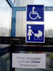 Elementarnego standardu krajów cywilizowanych nie spełniają ciasne, niewygodne, wiecznie zepsute podnośniki, mylnie określane windami. Zwracaliśmy na to uwagę wielokrotnie zarówno my [zobacz >>>], jak też i organizacje osób niepełnosprawnych [zobacz >>>]. Zwolennikami podnośników na kładki są jedynie osoby, które nie były zmuszone z tych "udogodnień" korzystać.
